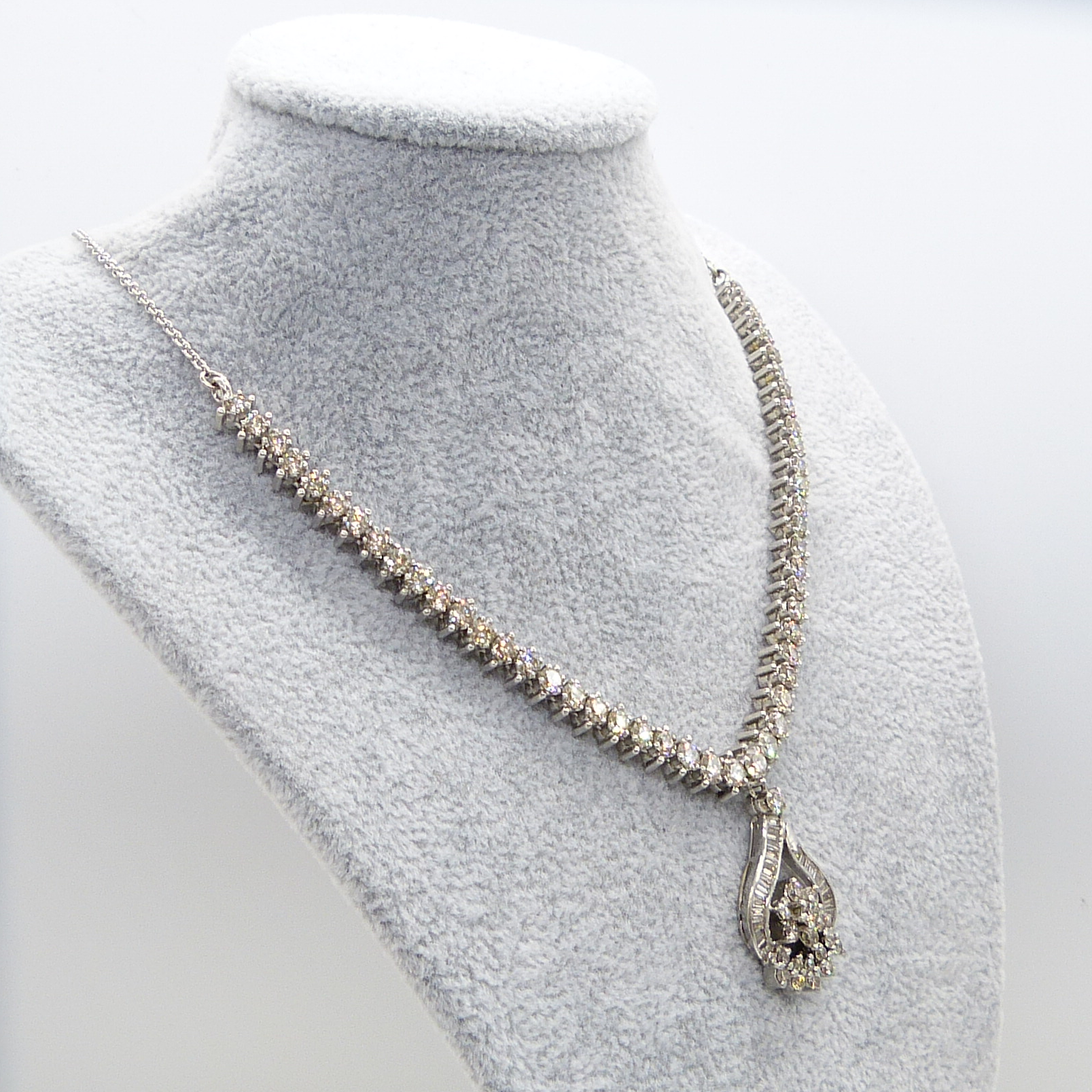 A large diamond necklace set with approximately 8.07ct of diamonds. Boxed. Original WGI Cert. no.