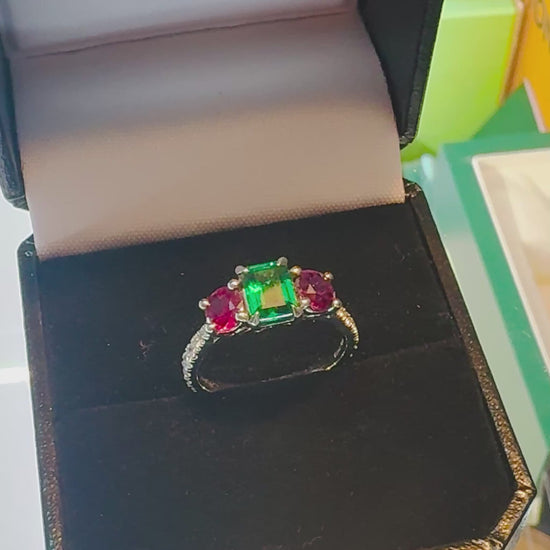 Emerald and Ruby Platinum Ring