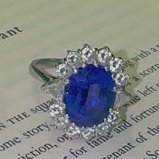 Stunning Tanzanite and Diamond 18k White Gold Ring. A beautiful quality ring with a rich blue central stone and bright diamond halo.