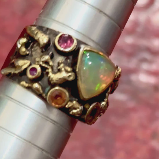 Opal Ruby and Citrine Silver Ring